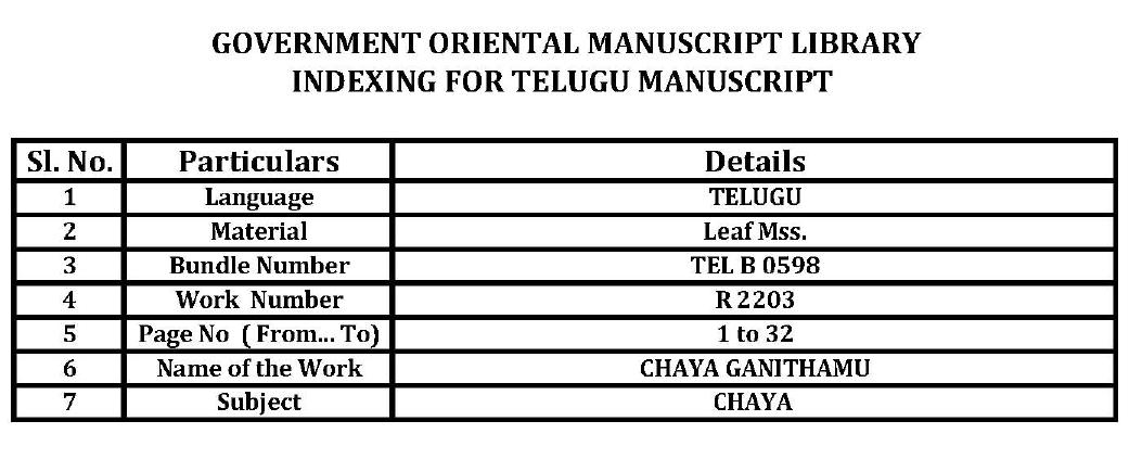 Part of Chaya Ganithamu