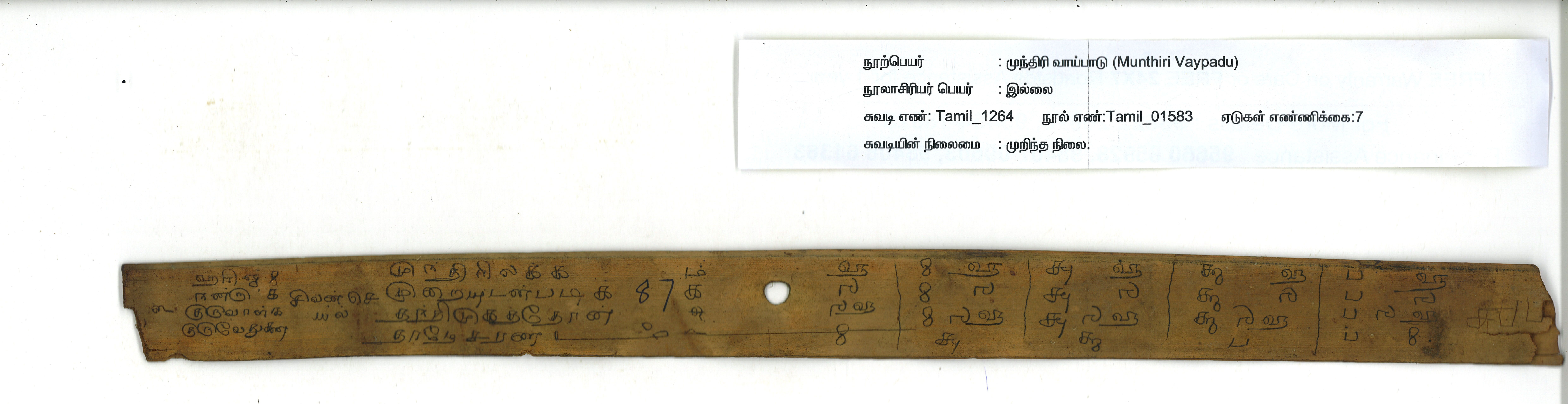 - Contains 7 leaves. Readable. Complete. Preserved in good condition. This manuscript deals with number table from fractions to crore.
