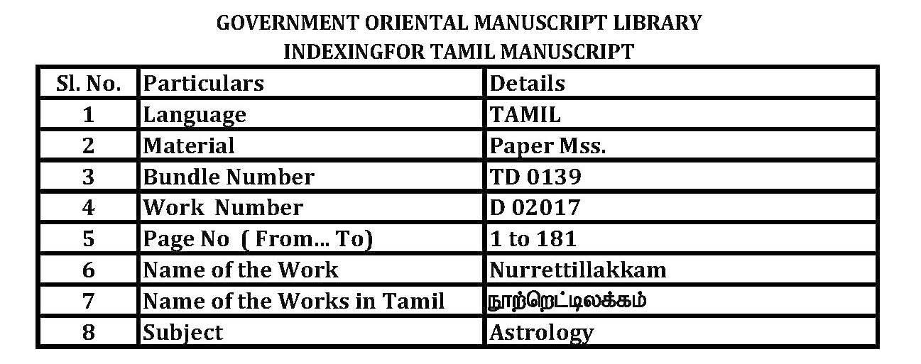 - Goverment Oriental Manuscript Library, Chennai