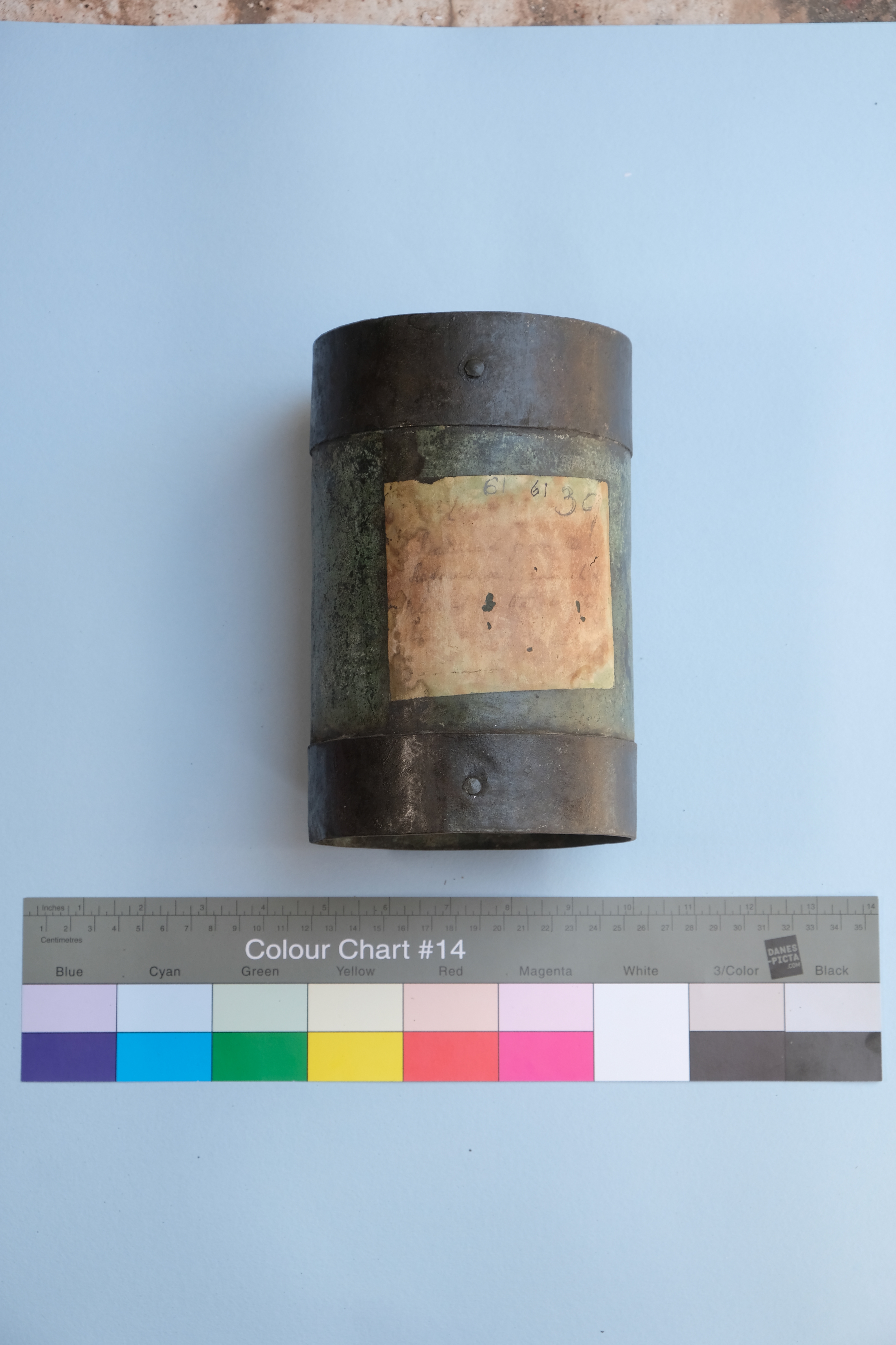 - With brass material at the top and bottom of the object