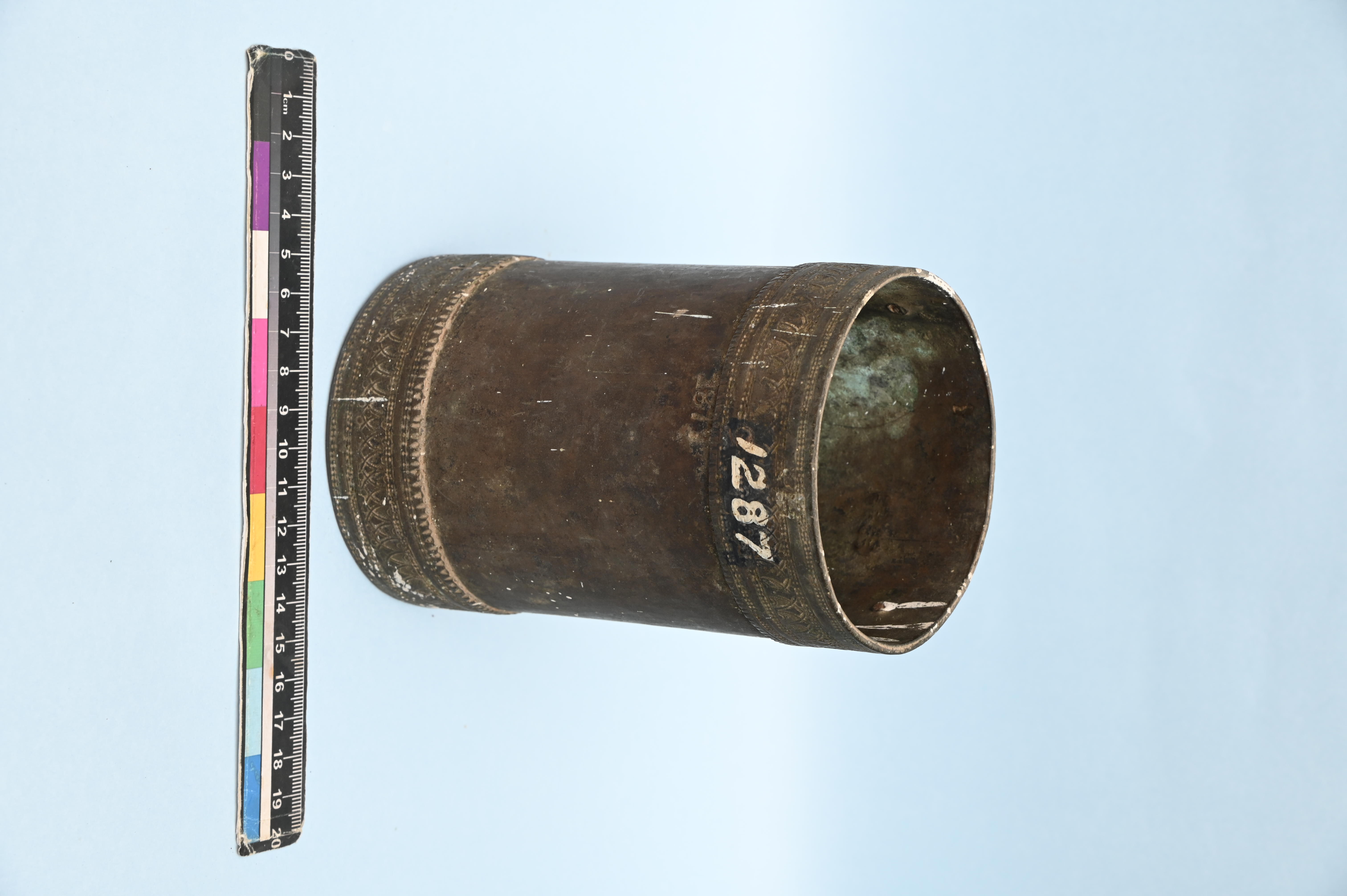- With designs at the top and bottom of the object