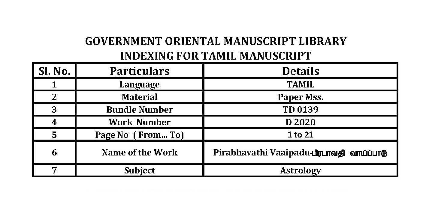 - Goverment Oriental Manuscript Library, Chennai