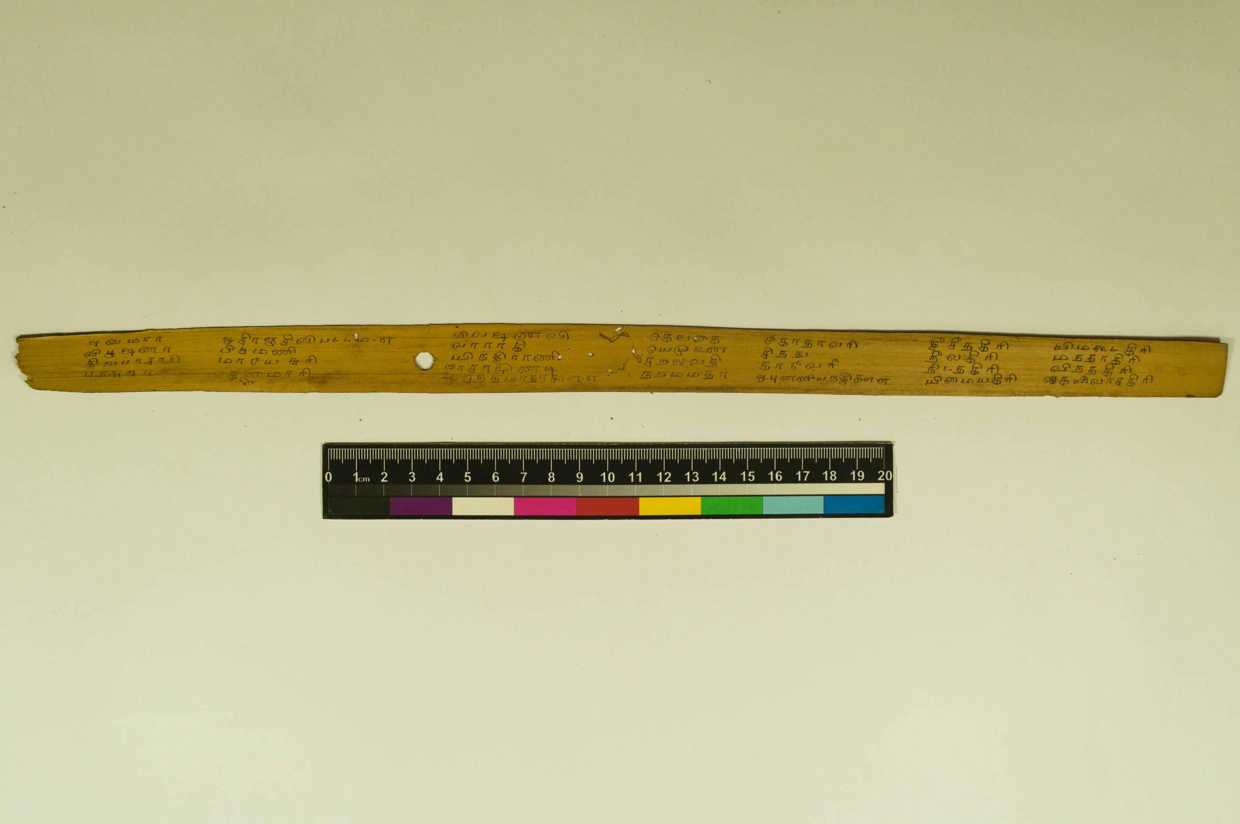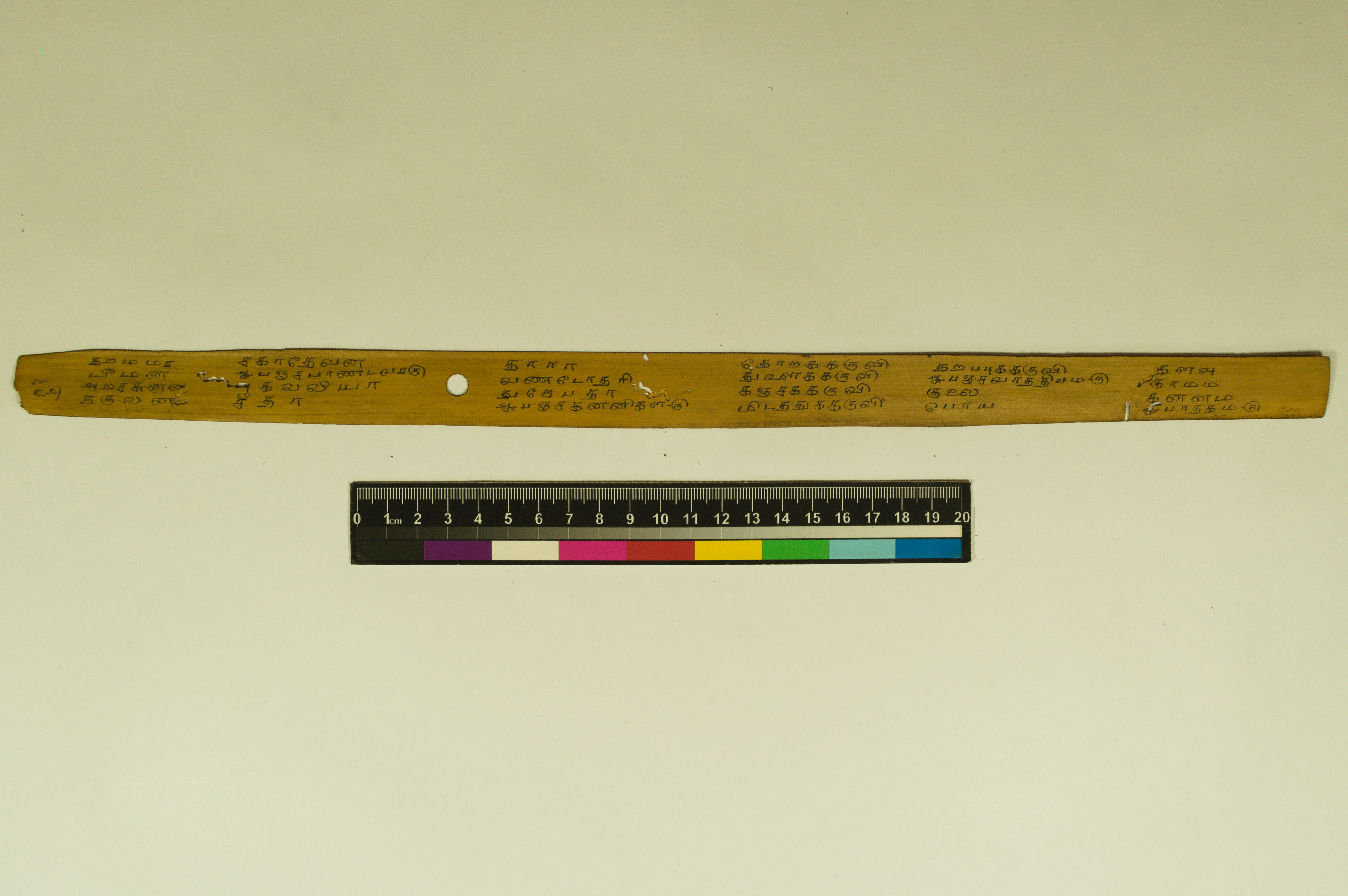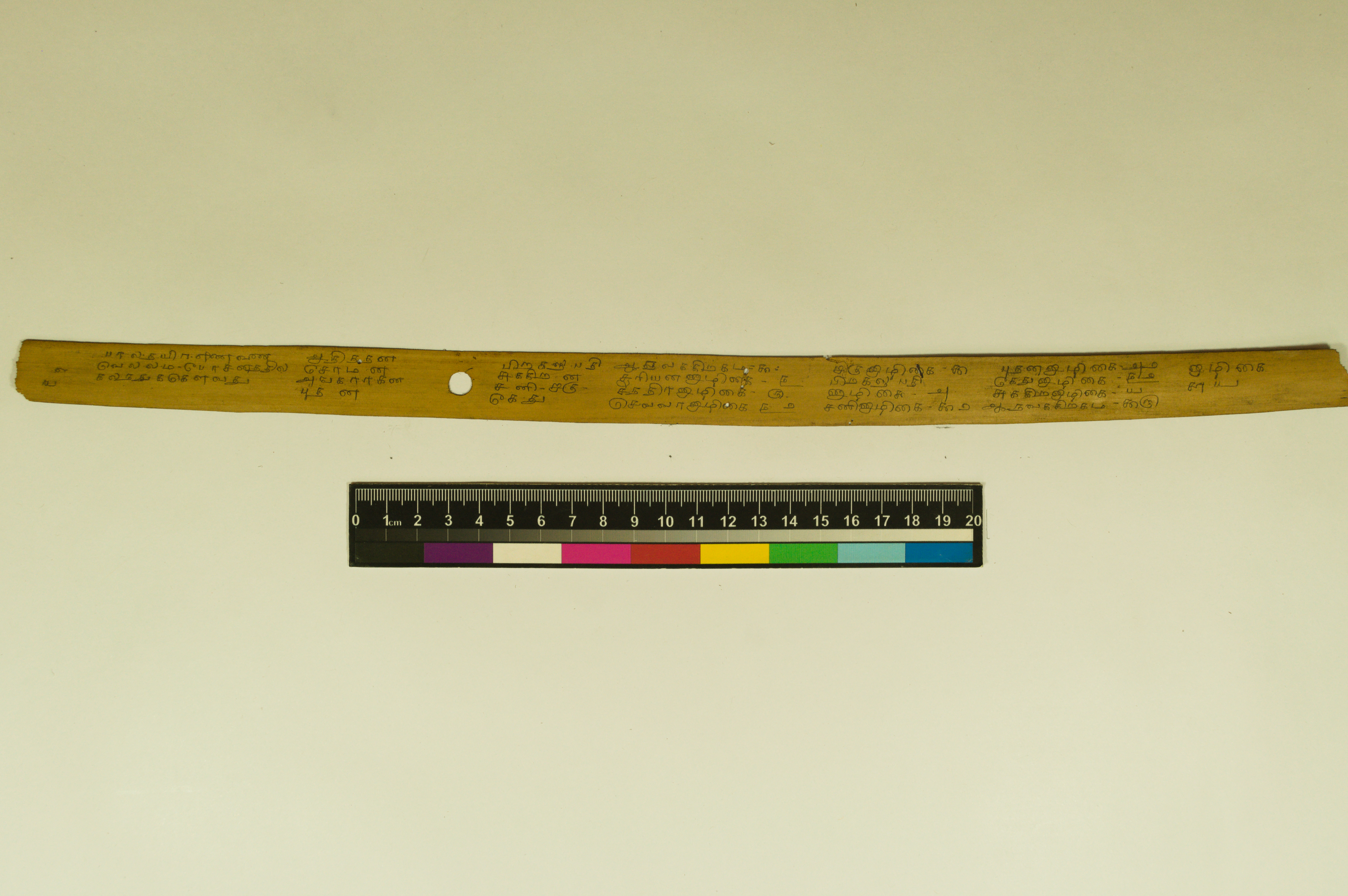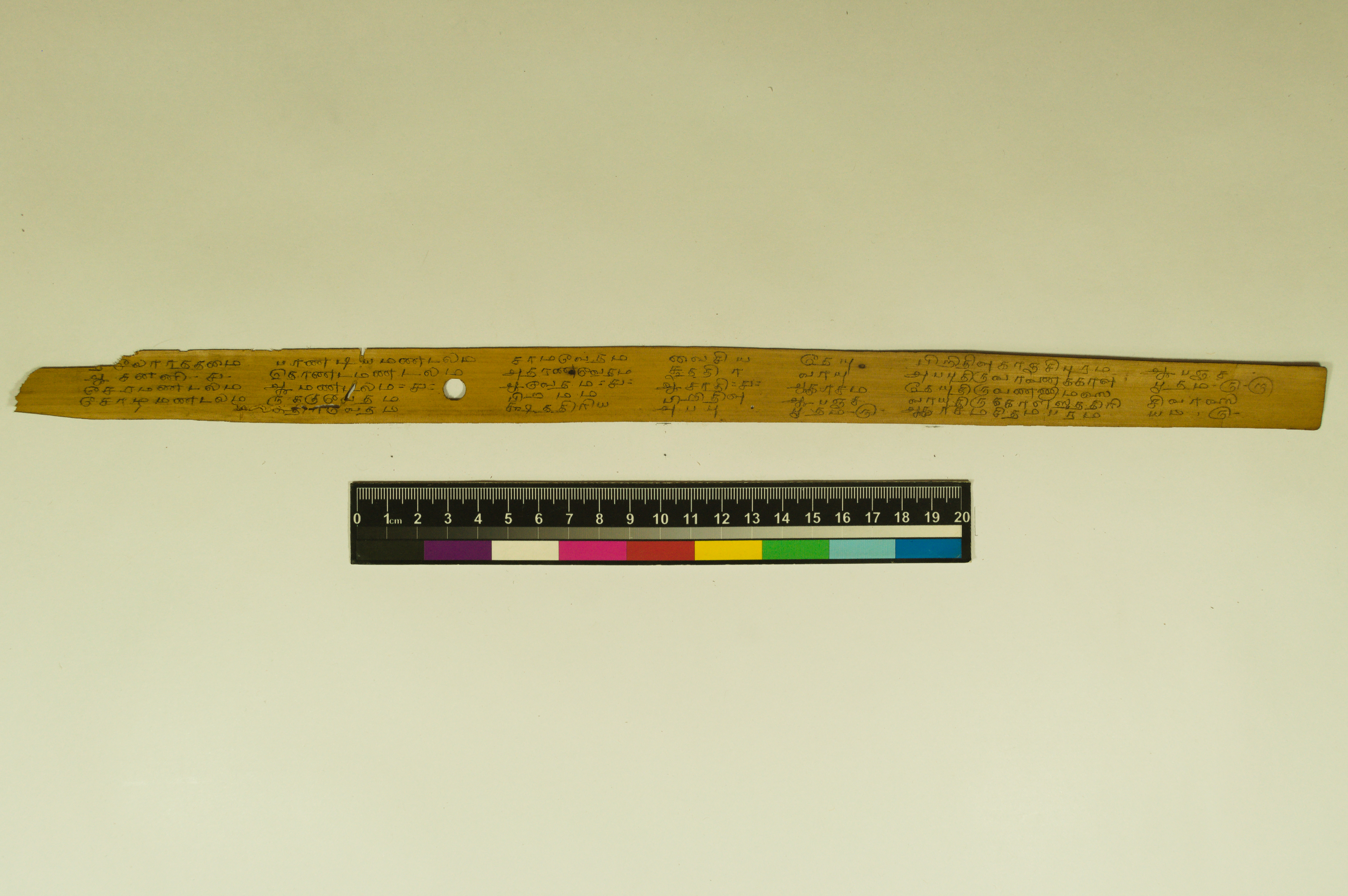 - The dimension of this manuscript is 45.5 x 2.5. Contains 52 leaves. 4-5 lines per page. Incomplete. Readable. Some leaves are damaged. This manuscript would have been a part of a curriculum for students at the primary level. This text deals with miscellaneous elements of society such as names of the rivers, worlds, months, timings of a day/month, calculating the times of stars in a day, astrological data, and calculations of auspicious times.