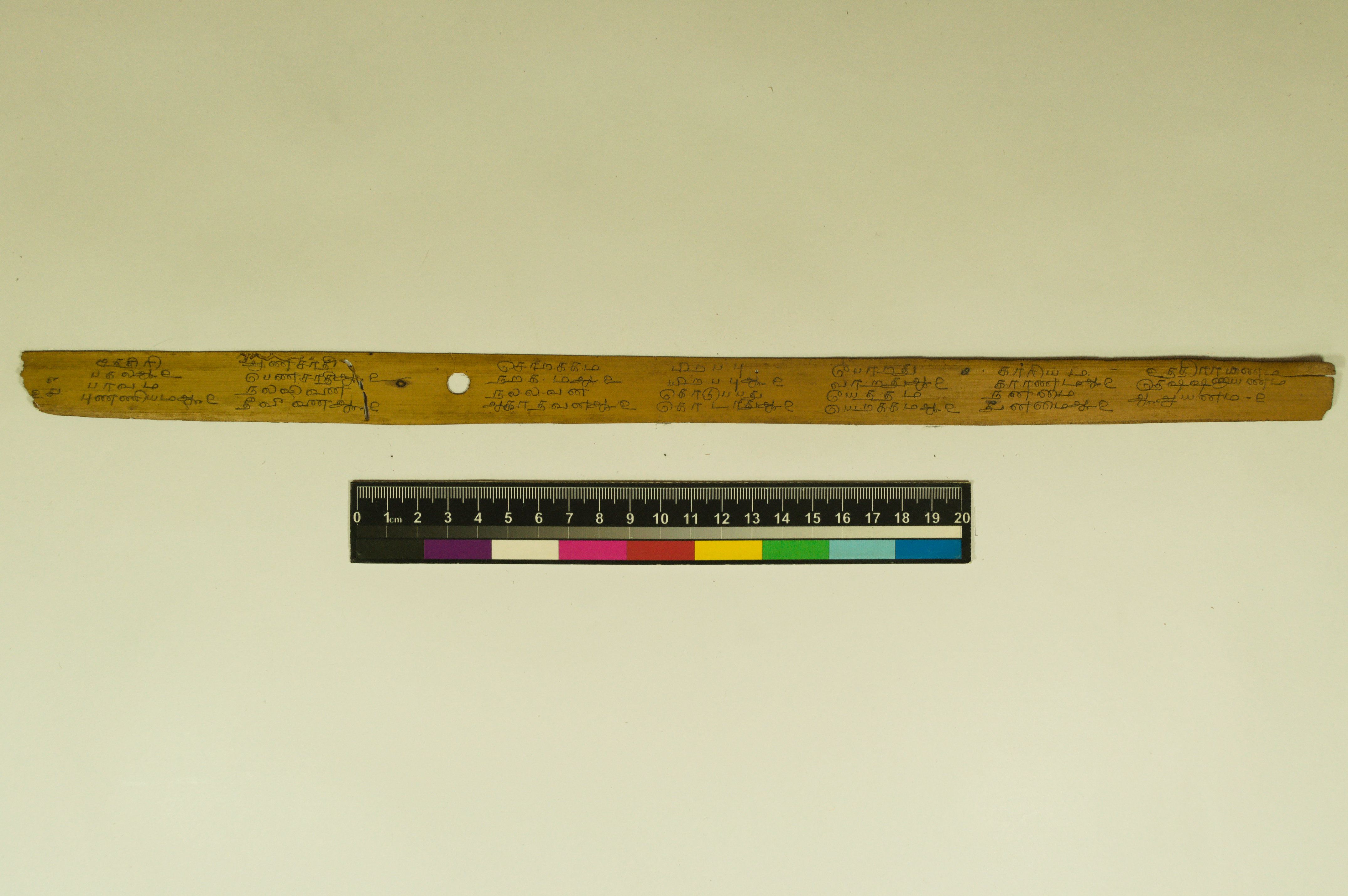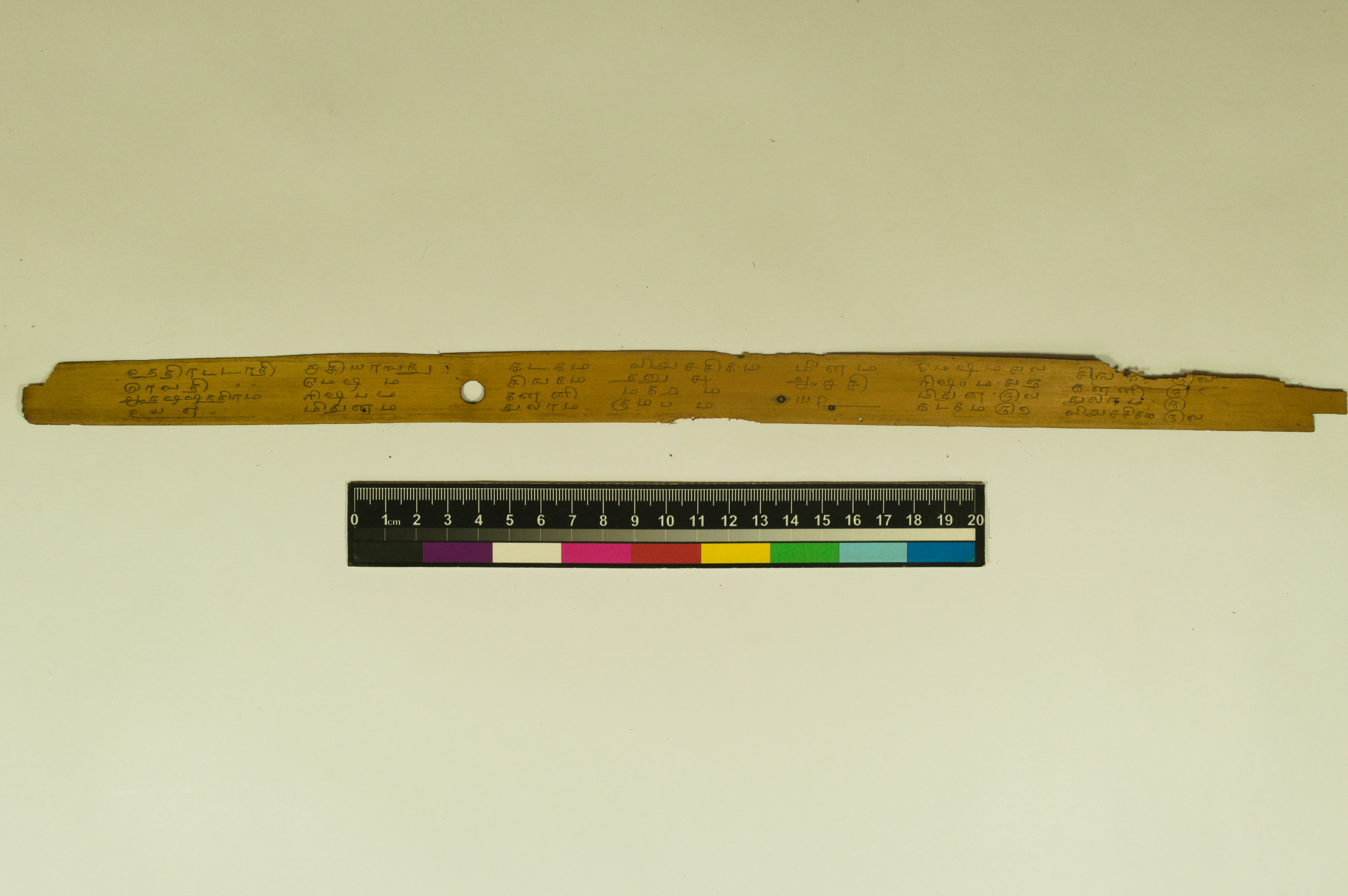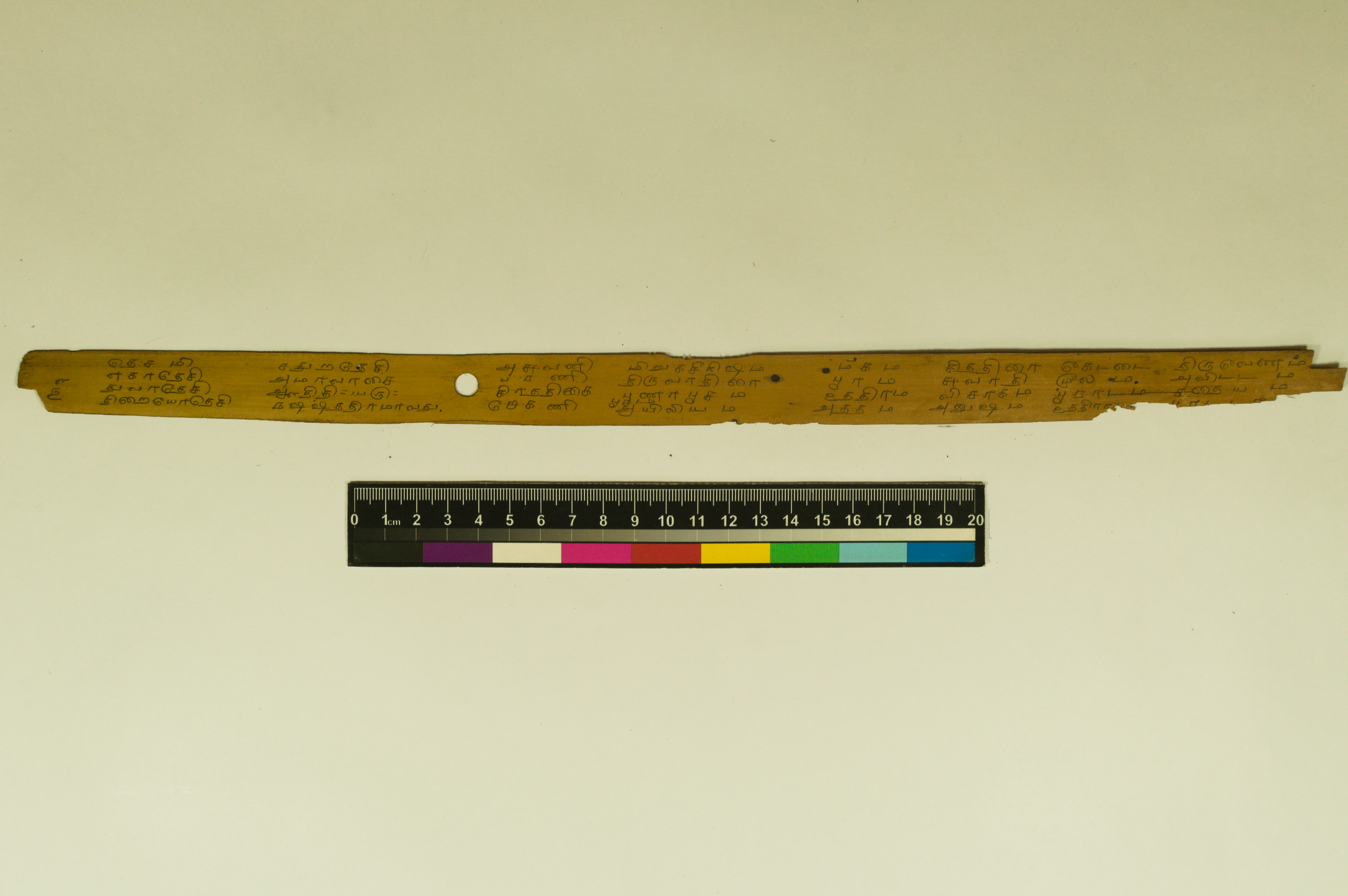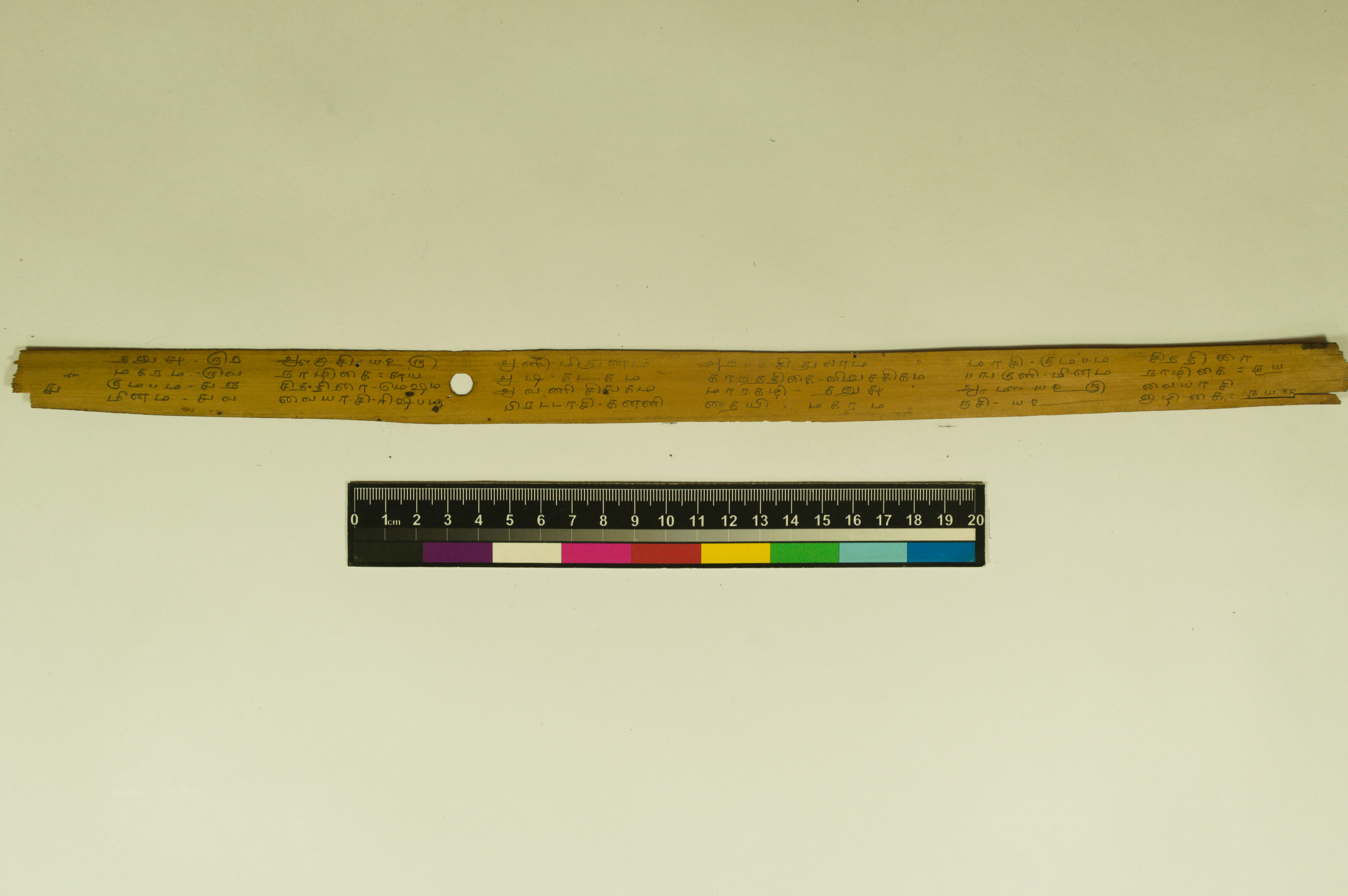 - The dimension of this manuscript is 45.5 x 2.5. Contains 52 leaves. 4-5 lines per page. Incomplete. Readable. Some leaves are damaged. This manuscript would have been a part of a curriculum for students at the primary level. This text deals with miscellaneous elements of society such as names of the rivers, worlds, months, timings of a day/month, calculating the times of stars in a day, astrological data, and calculations of auspicious times.