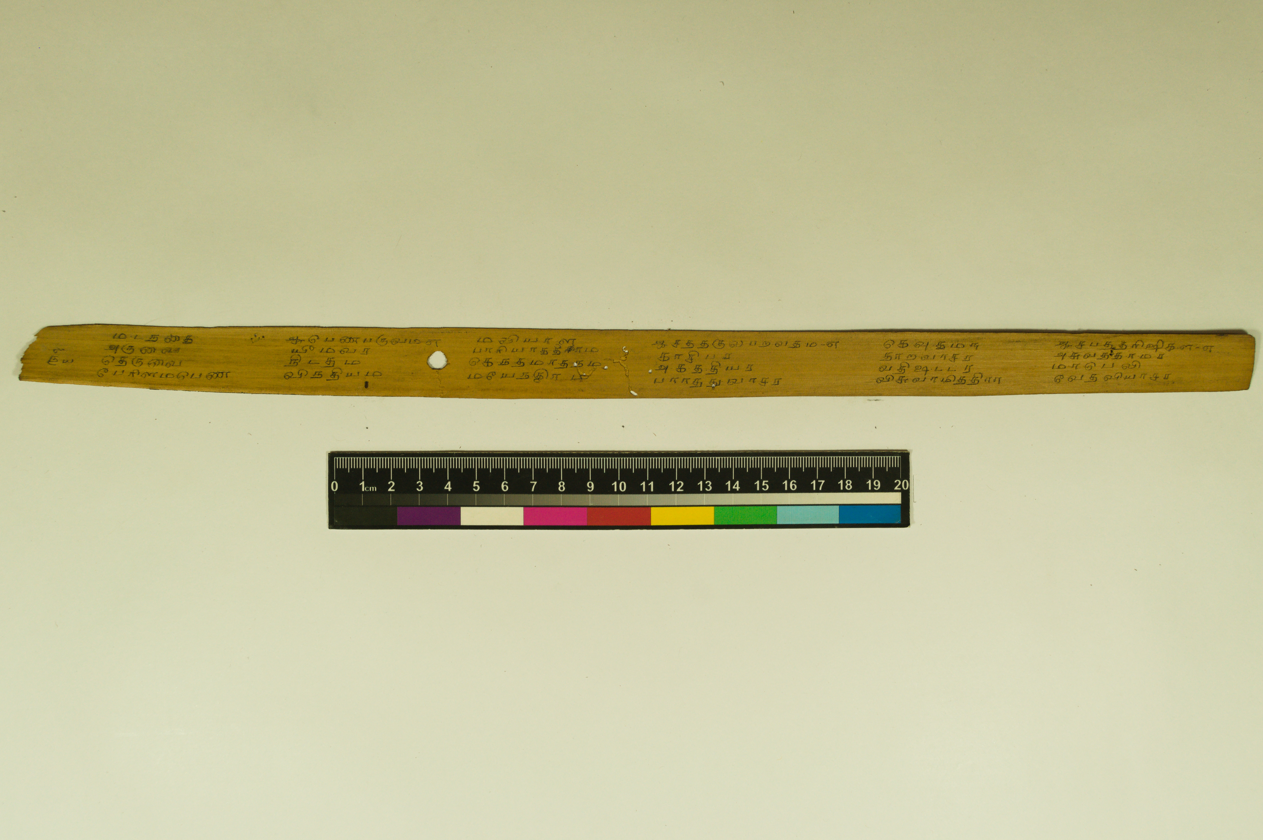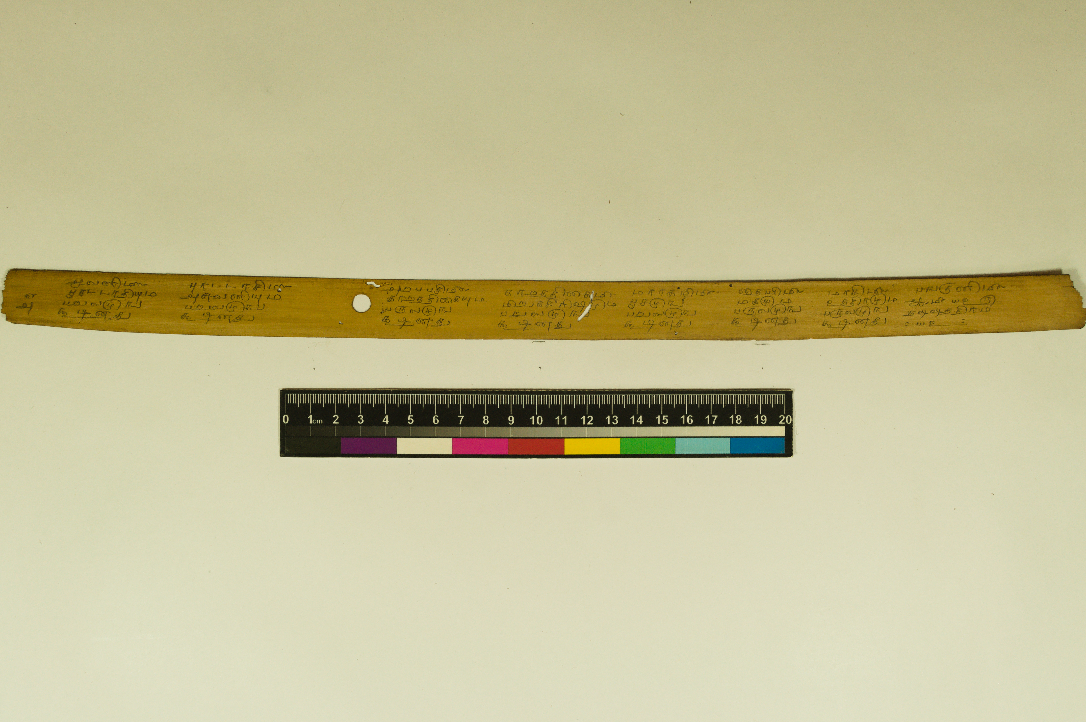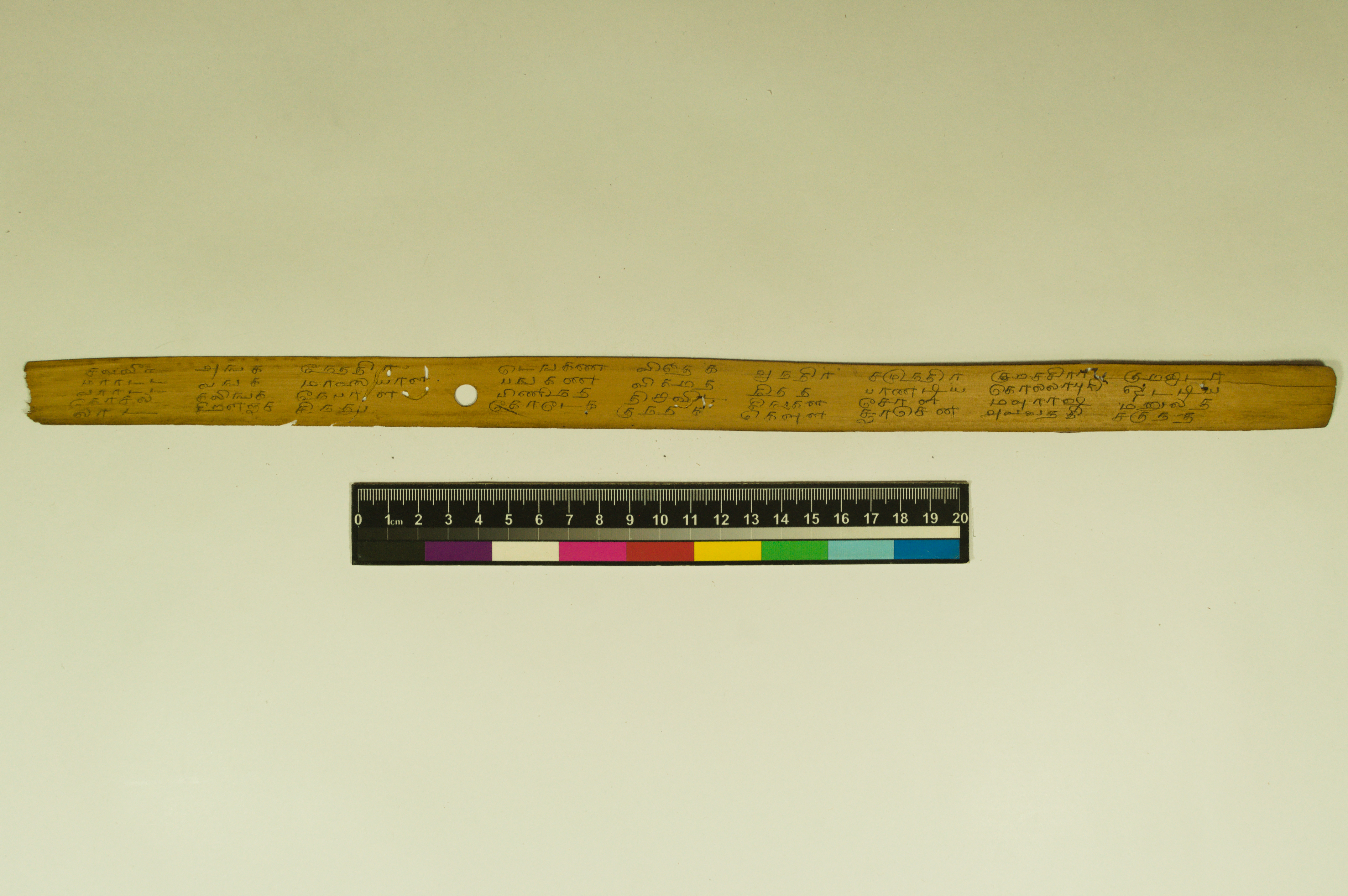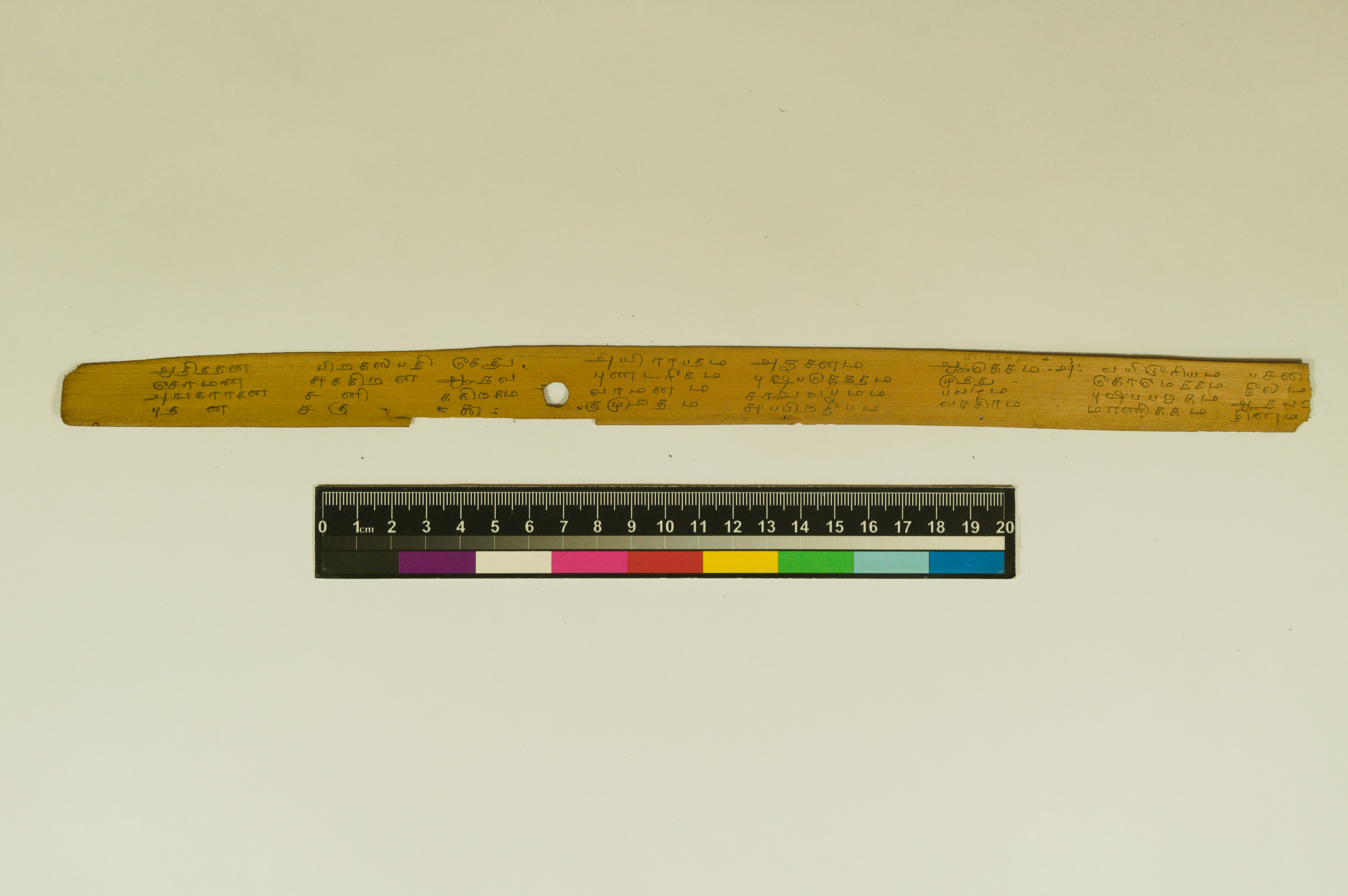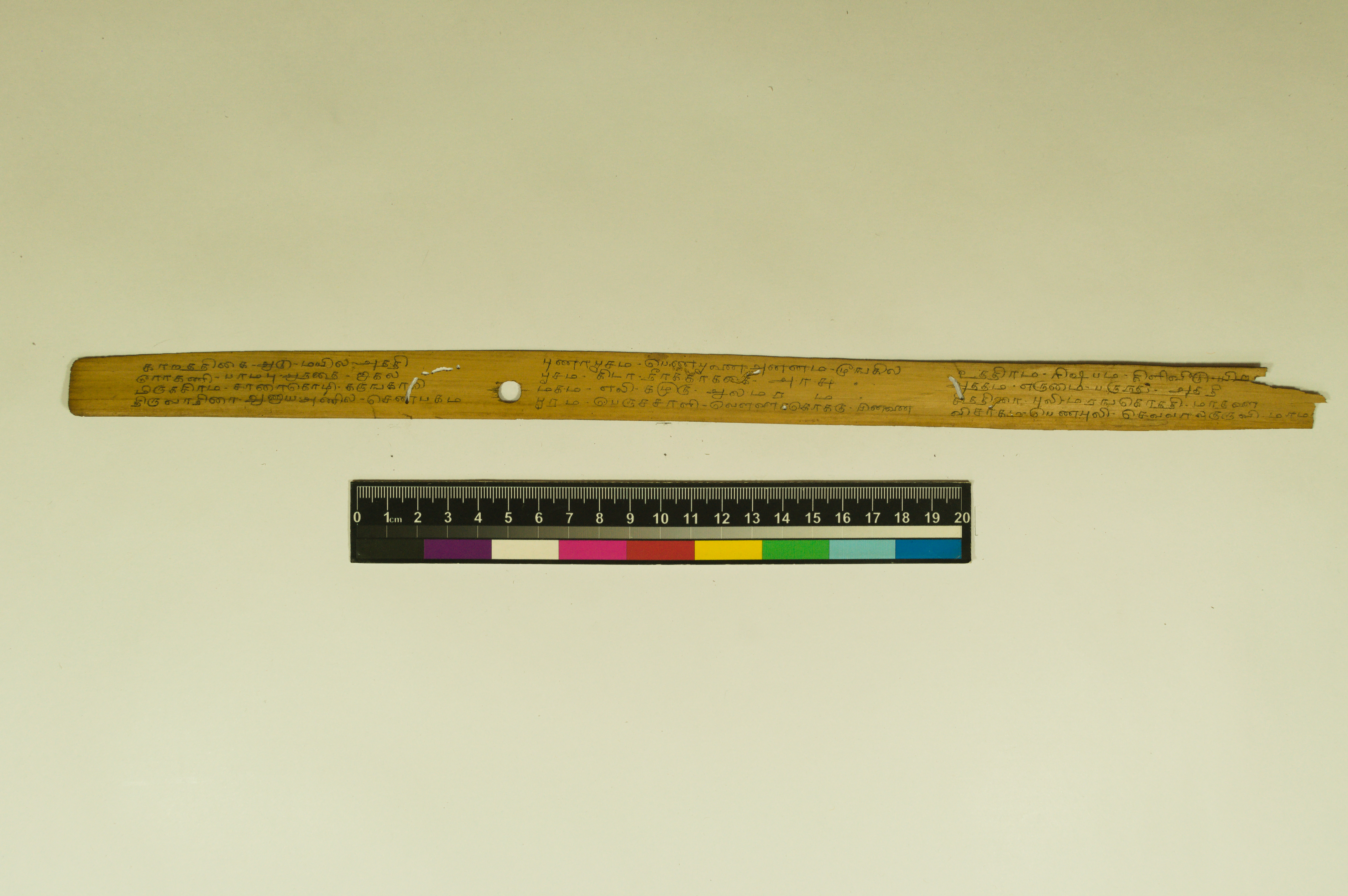 - The dimension of this manuscript is 45.5 x 2.5. Contains 52 leaves. 4-5 lines per page. Incomplete. Readable. Some leaves are damaged. This manuscript would have been a part of a curriculum for students at the primary level. This text deals with miscellaneous elements of society such as names of the rivers, worlds, months, timings of a day/month, calculating the times of stars in a day, astrological data, and calculations of auspicious times.