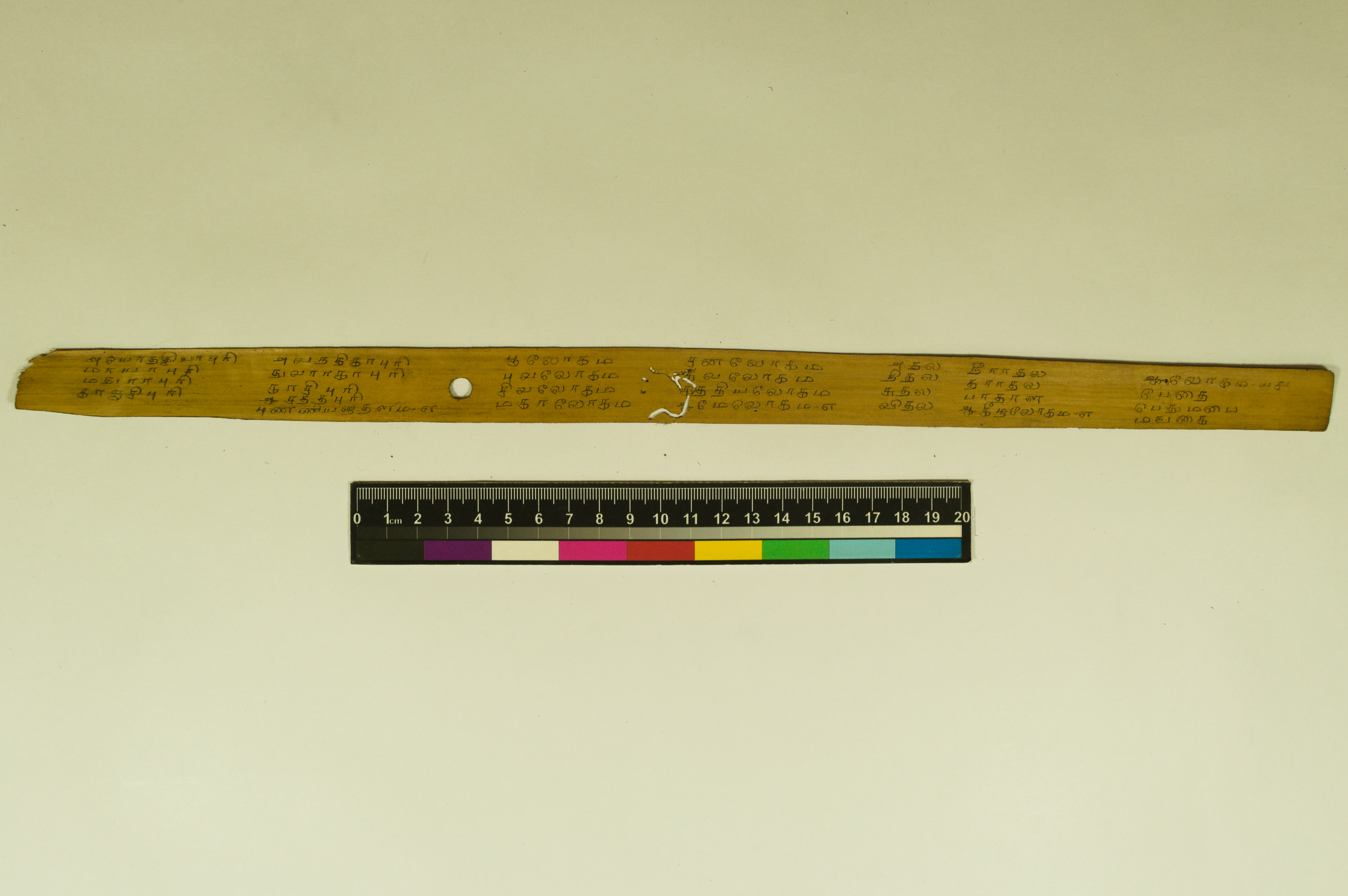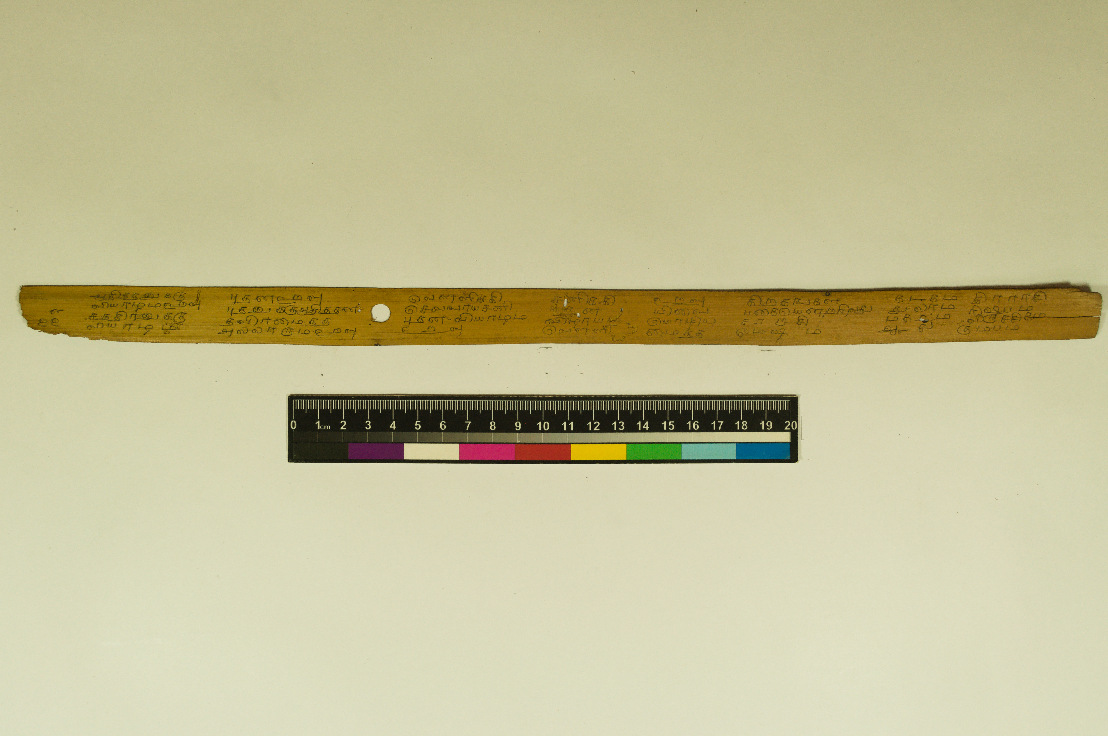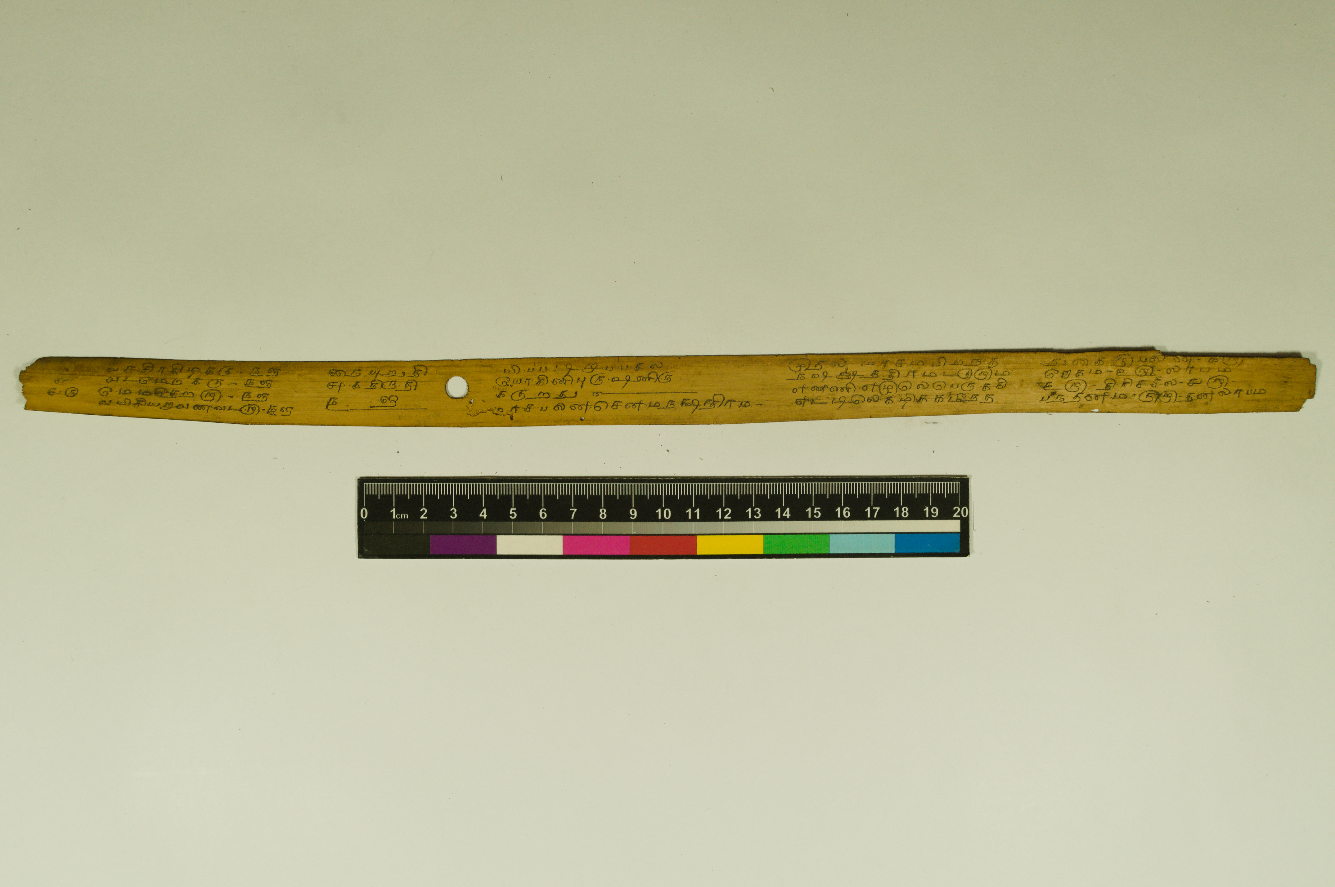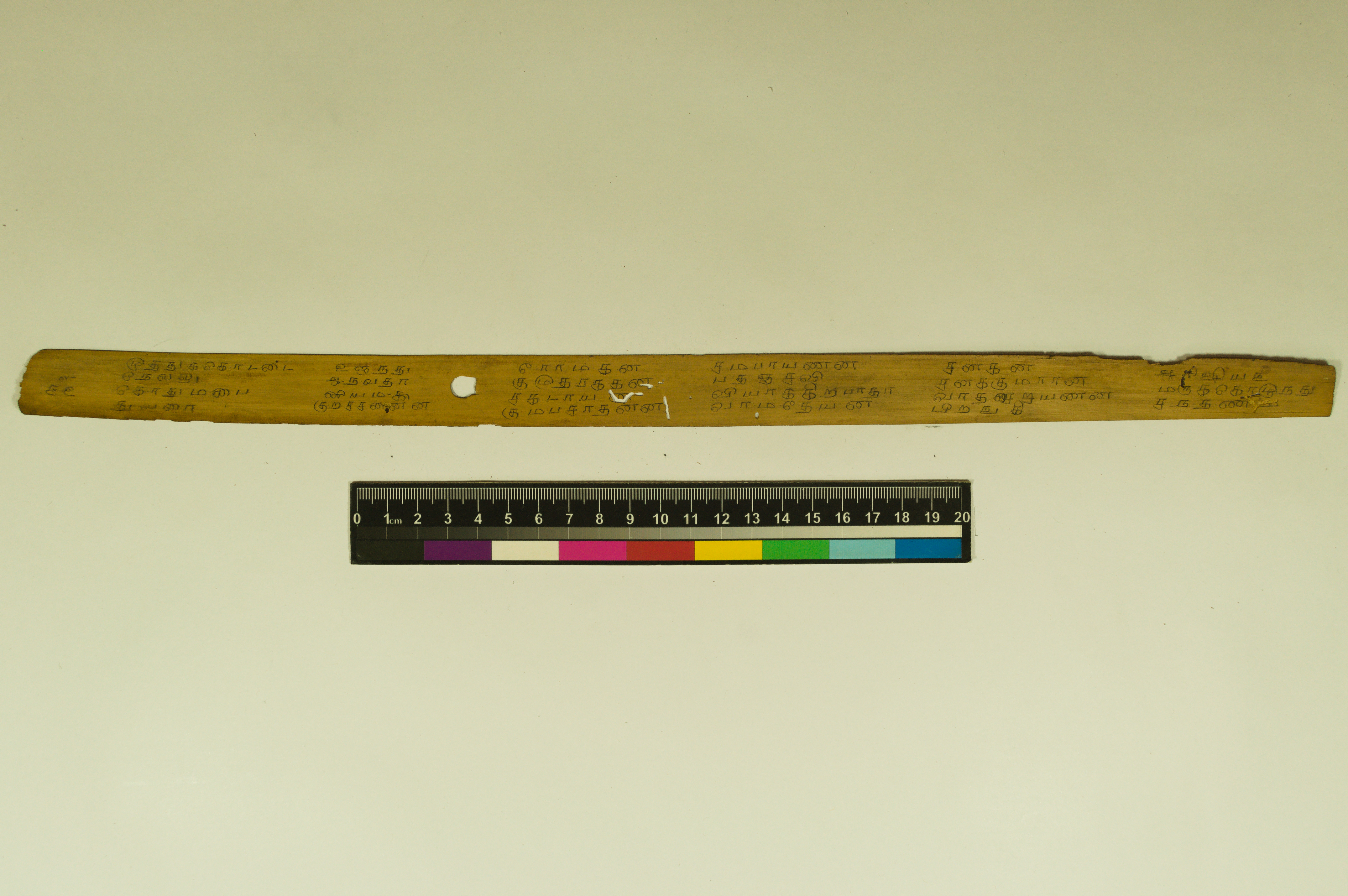 - The dimension of this manuscript is 45.5 x 2.5. Contains 52 leaves. 4-5 lines per page. Incomplete. Readable. Some leaves are damaged. This manuscript would have been a part of a curriculum for students at the primary level. This text deals with miscellaneous elements of society such as names of the rivers, worlds, months, timings of a day/month, calculating the times of stars in a day, astrological data, and calculations of auspicious times.